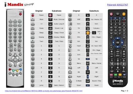 Um documento está incluso para ajudá-lo a usar o novo controle remoto facilmente, mostrando a correspondência dos botões.