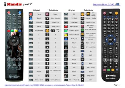 Um documento está incluso para ajudá-lo a usar o novo controle remoto facilmente, mostrando a correspondência dos botões.