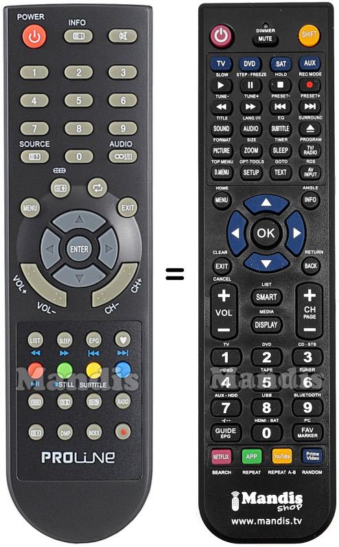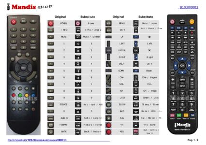 Abaixo, mostraremos a correspondência entre cada botão no controle remoto original e o botão que executa a mesma função no controle remoto de substituição. Em alguns casos, pode ser necessário pressionar a tecla SHIFT antes de pressionar outro botão para realizar determinadas ações. Essas funções adicionais geralmente não são amplamente utilizadas e são incluídas para facilitar o entendimento do controle remoto de substituição, ou porque o controle remoto original tem mais botões do que seu equivalente.