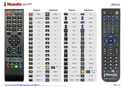 Abaixo, mostraremos a correspondência entre cada botão no controle remoto original e o botão que executa a mesma função no controle remoto de substituição. Em alguns casos, pode ser necessário pressionar a tecla SHIFT antes de pressionar outro botão para realizar determinadas ações. Essas funções adicionais geralmente não são amplamente utilizadas e são incluídas para facilitar o entendimento do controle remoto de substituição, ou porque o controle remoto original tem mais botões do que seu equivalente.