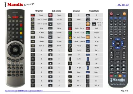 Comando à distância que substitui o original RC-D3-03 em todas as suas funções.