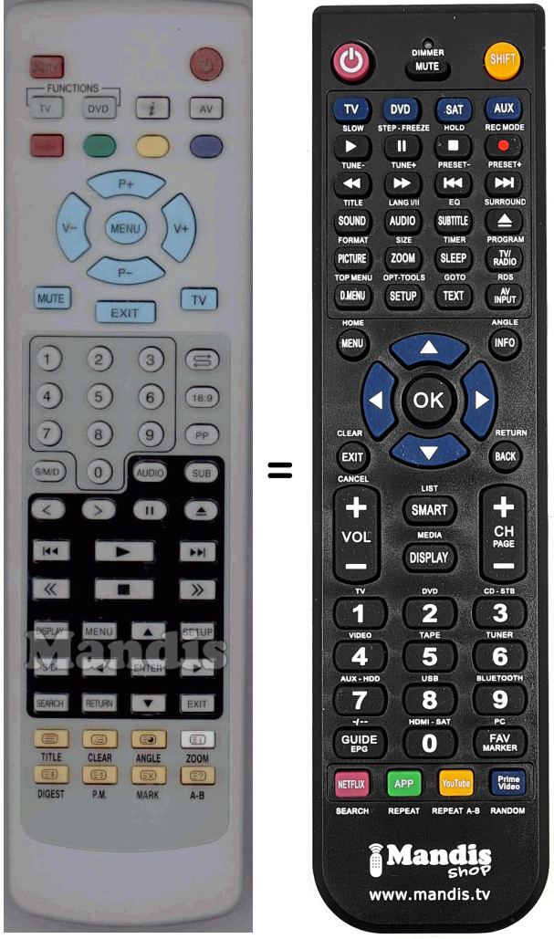 Comando à distância que substitui o original TM64 (631020001381) em todas as suas funções.