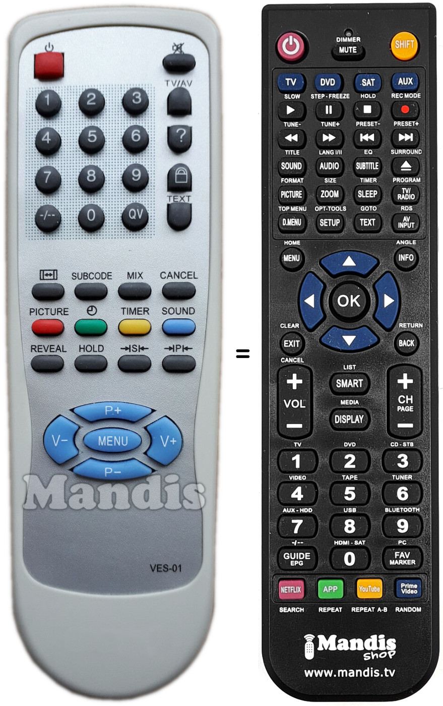 Comando à distância que substitui o original em todas as suas funções.