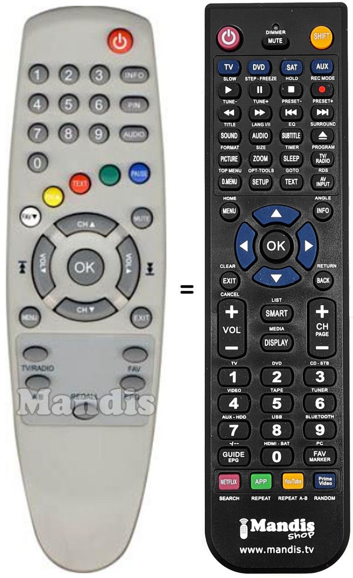 Comando à distância que substitui o original em todas as suas funções.