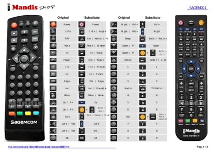 Início > Marcas > Comandos à Distância SAGEMCOM > Controle remoto para SAGEMCOM DT 84 HD