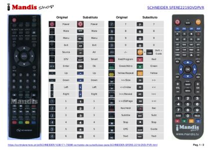 Comando à distância que substitui o original SFERE 2219 DVD PVR em todas as suas funções.