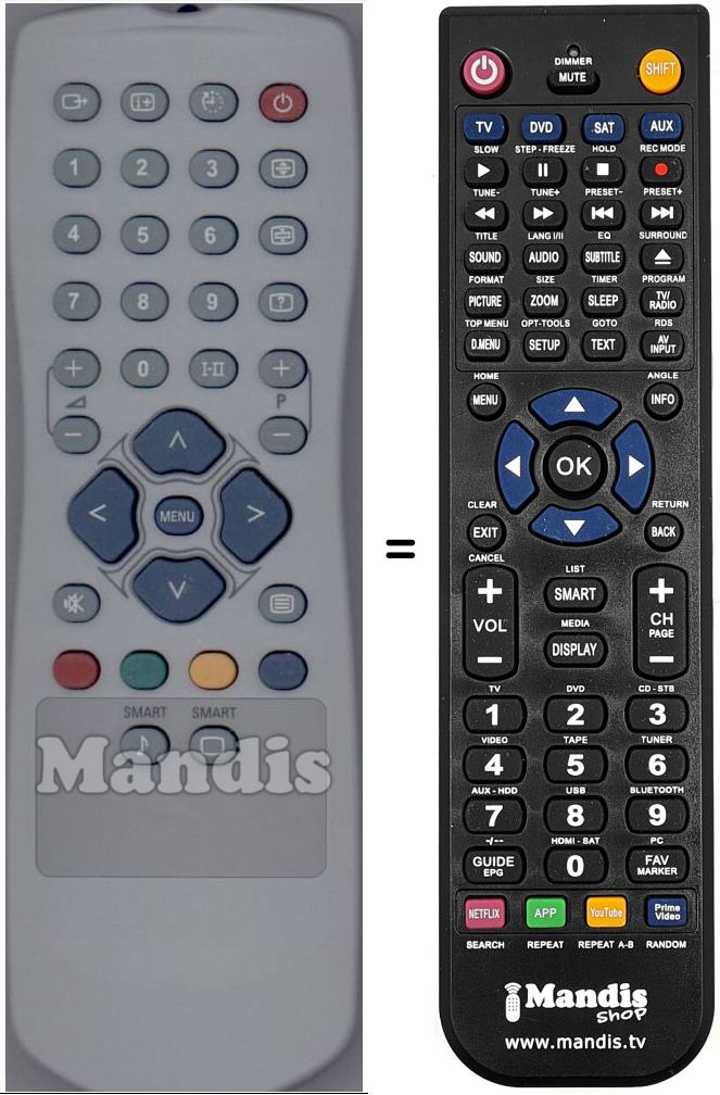 Comando à distância que substitui o original Radiola002 em todas as suas funções.