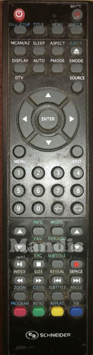 Comando à distância original SFERE 2219 DVD PVR da marca SCHNEIDER. Trata-se de um modelo original de comando à distância.