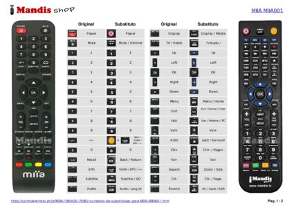 Abaixo, mostraremos a correspondência entre cada botão no controle remoto original e o botão que executa a mesma função no controle remoto de substituição. Em alguns casos, pode ser necessário pressionar a tecla SHIFT antes de pressionar outro botão para realizar determinadas ações. Essas funções adicionais geralmente não são amplamente utilizadas e são incluídas para facilitar o entendimento do controle remoto de substituição, ou porque o controle remoto original tem mais botões do que seu equivalente.