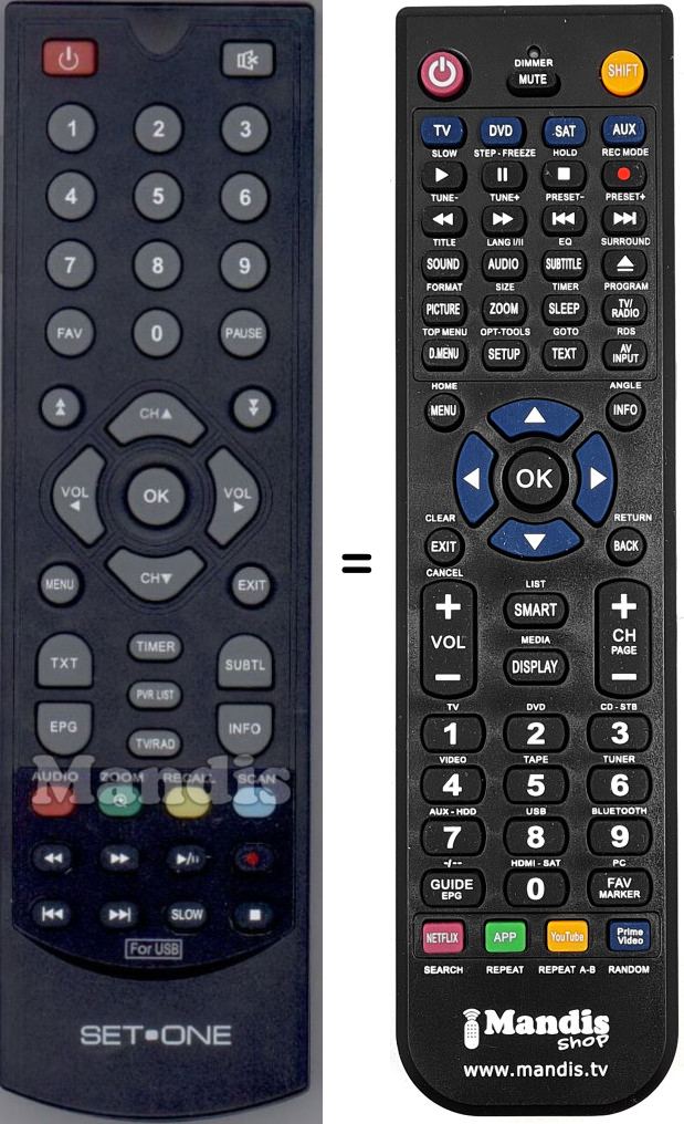 Comando à distância que substitui o original TX-4000T em todas as suas funções.