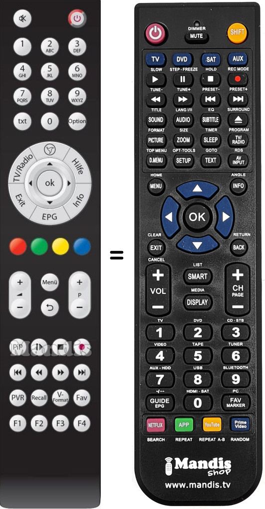 Comando à distância que substitui o original 3 Mediabox em todas as suas funções.