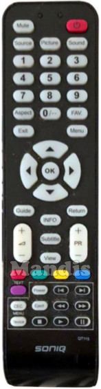 Comando à distância original QT115 da marca SONIQ. Trata-se de um modelo original de comando à distância.