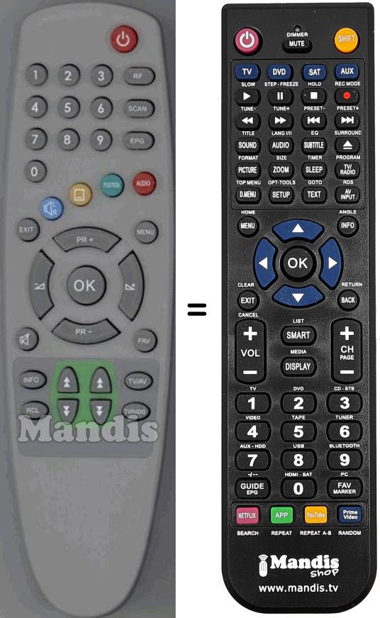 Comando à distância que substitui o original SUN003 em todas as suas funções.