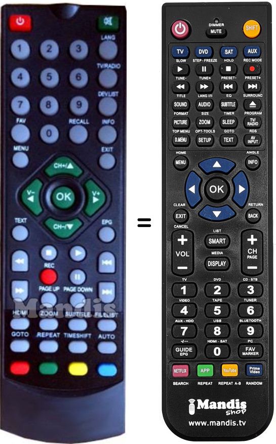 Comando à distância que substitui o original SY3151 em todas as suas funções.