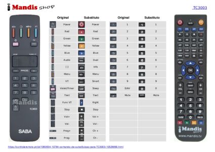 Início > Marcas > Comandos à Distância Saba > Controle remoto para Saba TC3003
