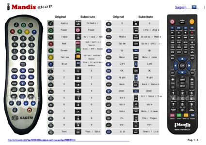 Um documento está incluso para ajudá-lo a usar o novo controle remoto facilmente, mostrando a correspondência dos botões.