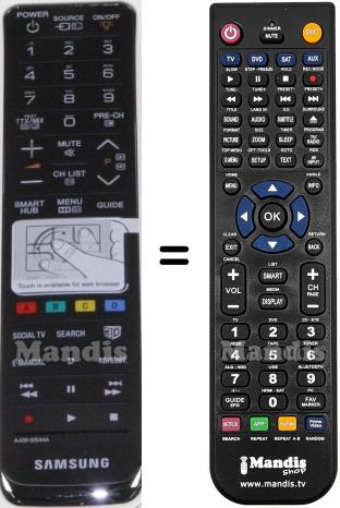 Um documento está incluso para ajudá-lo a usar o novo controle remoto facilmente, mostrando a correspondência dos botões.