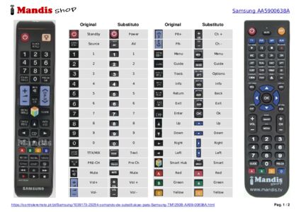 Comando à distância que substitui o original TM1250B (AA59-00638A) em todas as suas funções.