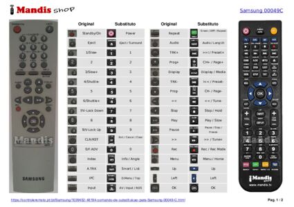 Abaixo, mostraremos a correspondência entre cada botão no controle remoto original e o botão que executa a mesma função no controle remoto de substituição. Em alguns casos, pode ser necessário pressionar a tecla SHIFT antes de pressionar outro botão para realizar determinadas ações. Essas funções adicionais geralmente não são amplamente utilizadas e são incluídas para facilitar o entendimento do controle remoto de substituição, ou porque o controle remoto original tem mais botões do que seu equivalente.