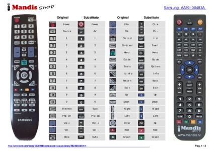 Este controle remoto executa todas as funções do controle remoto original: Power, Source, 1, 2, 3, 4, 5, 6, 7, 8, 9, 0, TTX / MIX, Pre-Ch, Vol +, Vol -, Mute, Ch List, P +, P -, Content, Menu, Guide, Tools, Info, Return, Exit, Up, Down, Right, Left, OK, Red / A, Green / B, Yellow / C, Blue / D, P.Mode, 3D, Dual I-II, E-Manual, P.Size, Ad / Subt., << / I<<, Pause, >> / >>I, Rec, Play, Stop