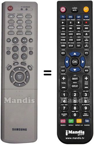 Abaixo, mostraremos a correspondência entre cada botão no controle remoto original e o botão que executa a mesma função no controle remoto de substituição. Em alguns casos, pode ser necessário pressionar a tecla SHIFT antes de pressionar outro botão para realizar determinadas ações. Essas funções adicionais geralmente não são amplamente utilizadas e são incluídas para facilitar o entendimento do controle remoto de substituição, ou porque o controle remoto original tem mais botões do que seu equivalente.