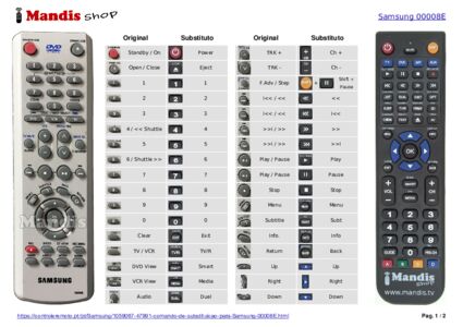 Um documento está incluso para ajudá-lo a usar o novo controle remoto facilmente, mostrando a correspondência dos botões.