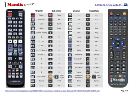 Este controle remoto substitui a maioria das funções do seu TM1151 KOREA (AH59-02338A). Não é um controle remoto universal, mas sim uma cópia com a maioria dos botões e funções do seu original.