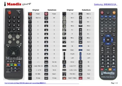 Comando à distância que substitui o original MI-BN5900531A em todas as suas funções. Não se trata de um comando universal, mas sim de um comando que substitui o original. Receberá um comando completamente pronto. Para fazê-lo funcionar, basta colocar as pilhas. Não é necessário programá-lo. Damos-lhe total garantia de que o comando cumprirá com as mesmas funções do comando original.