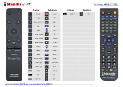 Comando à distância que substitui o original Harman/Kardon (AH59-02767C) em todas as suas funções.