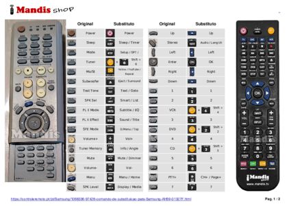 Um documento está incluso para ajudá-lo a usar o novo controle remoto facilmente, mostrando a correspondência dos botões.