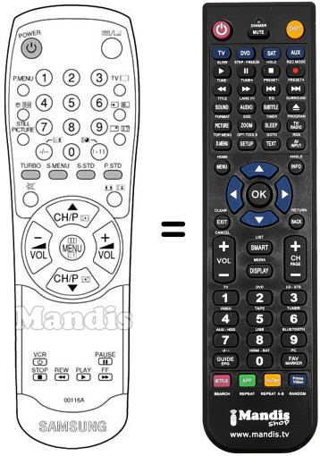 Comando à distância que substitui o original 00116 A em todas as suas funções.