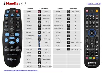 Um documento está incluso para ajudá-lo a usar o novo controle remoto facilmente, mostrando a correspondência dos botões.