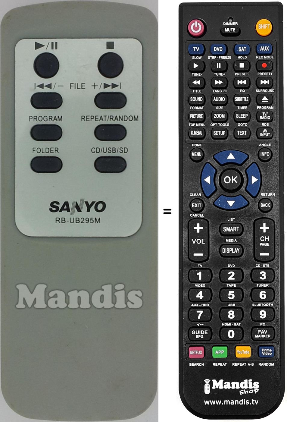 Início > Marcas > Comandos à Distância Sanyo > Controle remoto para SANYO RB-UB295M
