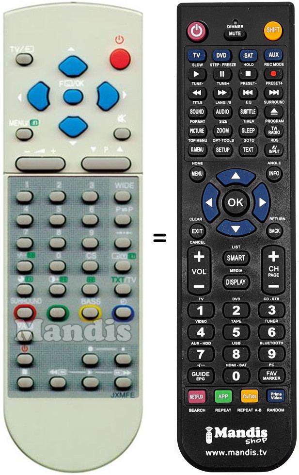 Comando à distância que substitui o original em todas as suas funções.