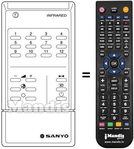 Comando à distância que substitui o original em todas as suas funções.