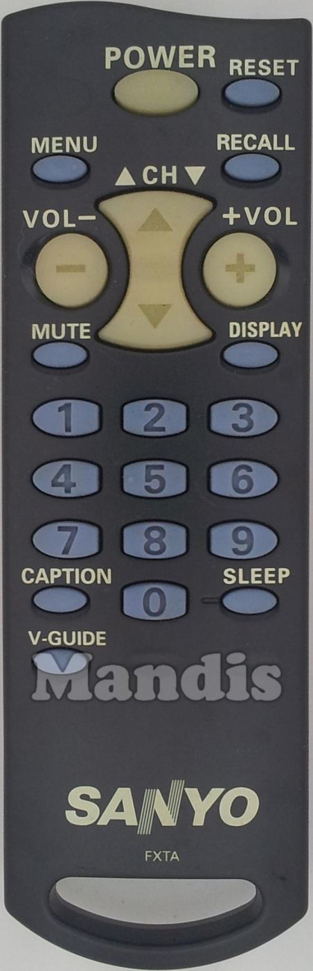 Comando à distância original FXTA da marca Sanyo. Trata-se de um modelo original de comando à distância.
