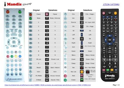 Um documento está incluso para ajudá-lo a usar o novo controle remoto facilmente, mostrando a correspondência dos botões.