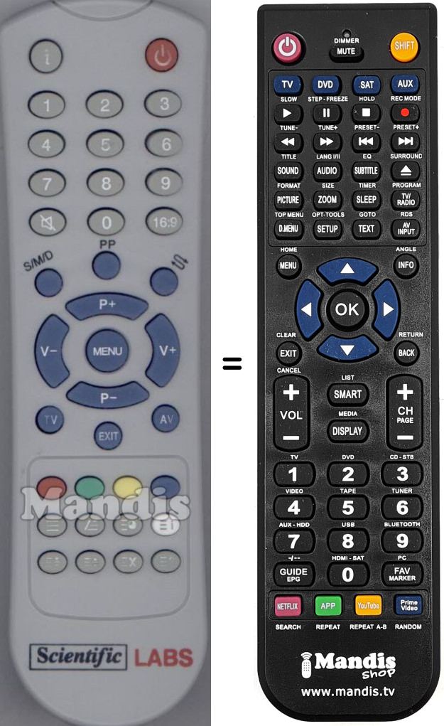 Comando à distância que substitui o original Scientificlabs002 em todas as suas funções.