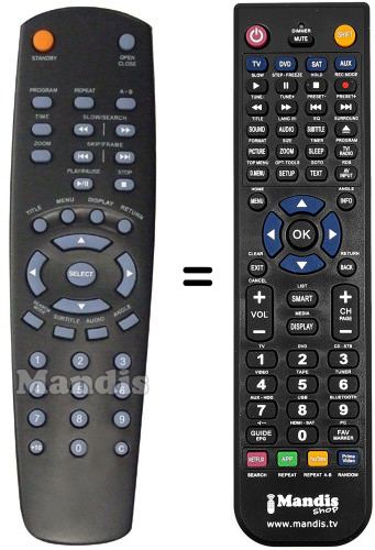Comando à distância que substitui o original RC2530 (08002776) em todas as suas funções.