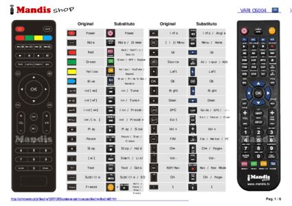 Abaixo, mostraremos a correspondência entre cada botão no controle remoto original e o botão que executa a mesma função no controle remoto de substituição. Em alguns casos, pode ser necessário pressionar a tecla SHIFT antes de pressionar outro botão para realizar determinadas ações. Essas funções adicionais geralmente não são amplamente utilizadas e são incluídas para facilitar o entendimento do controle remoto de substituição, ou porque o controle remoto original tem mais botões do que seu equivalente.