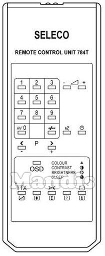 Comando à distância original 784 T OSD da marca Seleco. Trata-se de um modelo original de comando à distância.