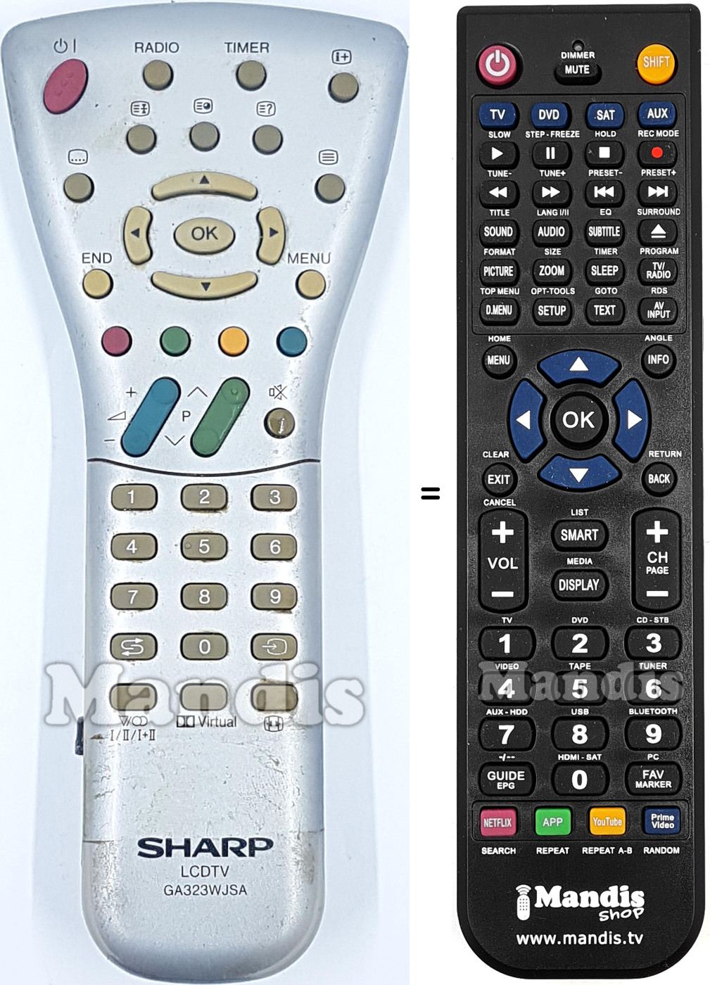 Início > Marcas > Comandos à Distância Sharp > Controle remoto para Sharp GA 323 WJSA