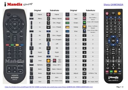 Um documento está incluso para ajudá-lo a usar o novo controle remoto facilmente, mostrando a correspondência dos botões.