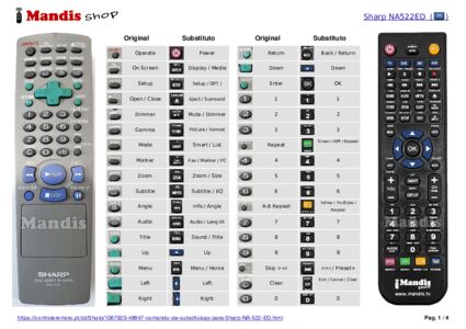 Um documento está incluso para ajudá-lo a usar o novo controle remoto facilmente, mostrando a correspondência dos botões.