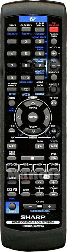Comando à distância original RRMCGA163AWSA que serve para home cinema da marca Sharp. Trata-se de um modelo original de comando à distância.