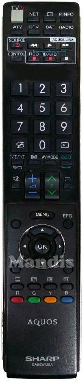 Comando à distância original GA 906 WJSA (RRMCGA906WJSA) da marca Sharp. Trata-se de um modelo original de comando à distância.