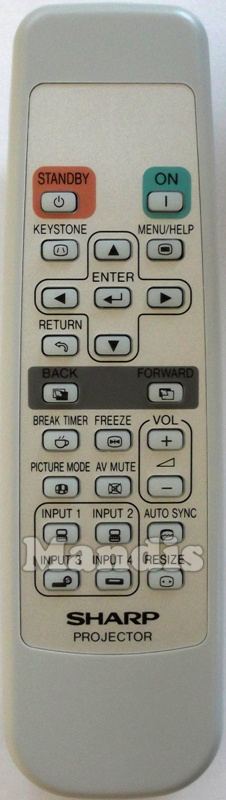 Standby, On, Keystone, Menu / Help, Up, Down, Right, Left, Enter, Return, Back, Forward, Break Timer, Freeze, Picture Mode, AV Mute, Vol +, Vol -, Input 1, Input 2, Input 3, Input 4, Auto Sync, Resize