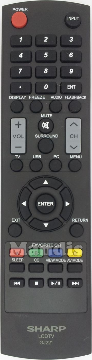 Comando à distância original GJ221 da marca Sharp. Trata-se de um modelo original de comando à distância.