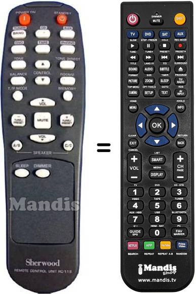 Comando à distância que substitui o original RC119-1 em todas as suas funções.