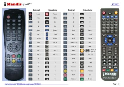 Abaixo, mostraremos a correspondência entre cada botão no controle remoto original e o botão que executa a mesma função no controle remoto de substituição. Em alguns casos, pode ser necessário pressionar a tecla SHIFT antes de pressionar outro botão para realizar determinadas ações. Essas funções adicionais geralmente não são amplamente utilizadas e são incluídas para facilitar o entendimento do controle remoto de substituição, ou porque o controle remoto original tem mais botões do que seu equivalente.